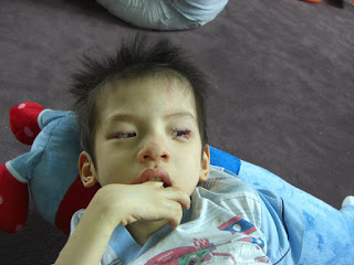 han with the older kids (who are on the main level and get more frequent visitors). The baby room I was in has about 25 kids, aged 1-4. I walked around and played with each kid for a while....singing to them, playing peek-ab-boo, holding them, rocking them, taking them for walks outside, etc. None of them can walk due to their physical disabilities, but I think a couple have the ability to learn with some training and therapy, so my goal is to work on this and show the staff how to help teach them. I wish I had more training in physical therapy, but I think I've picked up enough to be able to do at least some good. My favorite little boy was all the way in the back corner, and he was crying, kicking, screaming, and scratching at his face. I went over to comfort him and noticed that he had no eyes. I didn't want to startle him since he couldn't see m